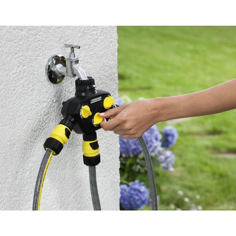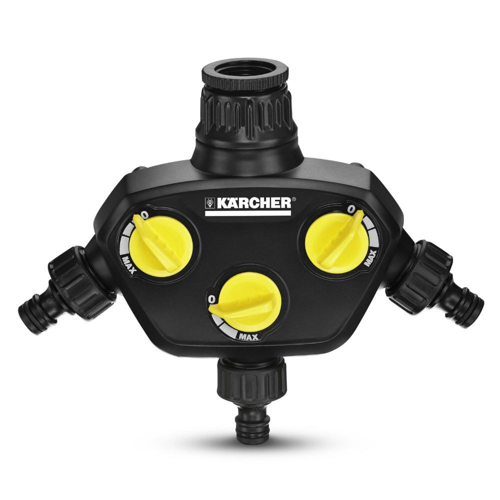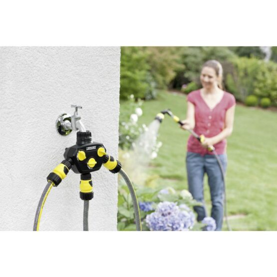 Υψηλής ποιότητας ρυθμιζόμενος διανομέας νερού 3 εξόδων με σύνδεσμο βρύσης G3/4 και μειωτήρα G1/2, για πότισμα με έως τρία λάστιχα ταυτόχρονα. Ο διανομέας τριών εξόδων διαθέτει τρεις συνδέσμους βρύσης με τρία ανεξάρτητα κομβία ελέγχου και προαιρετικό σύστημα παροχής νερού. Μπορεί να χρησιμοποιηθεί σε κάθε τύπου βρύση με όλα τα standard λάστιχα κήπου και ξεχωρίζει χάρη στην άριστη ποιότητα και τον εργονομικό σχεδιασμό του, που παρέχουν άνετο και εύκολο χειρισμό. Διαθέτει σύνδεσμο με συμπαγή εσωτερική ένωση για εύκολη σύνδεση στη βρύση.