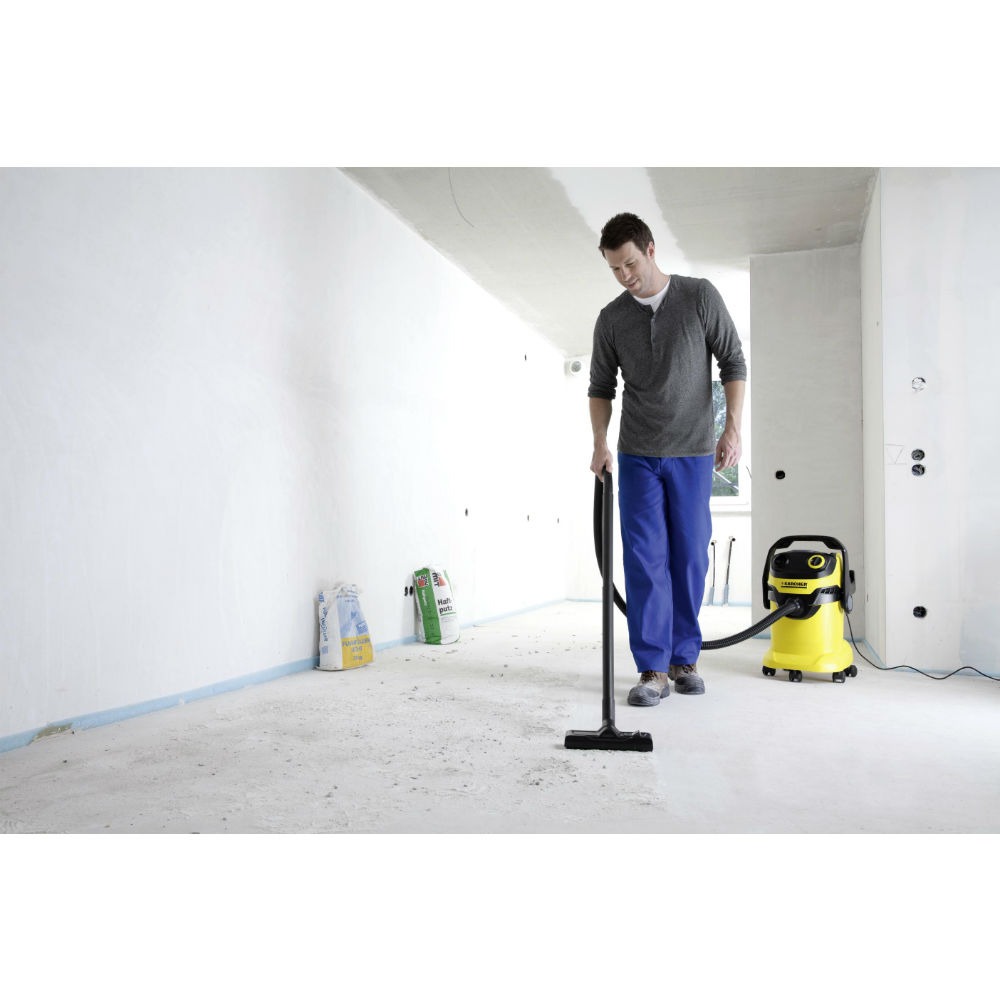 Η σκούπα πολλαπλών εφαρμογών κορυφαίας κατηγορίας WD 5 είναι μία πολύπλευρη σκούπα που εντυπωσιάζει με την αναρροφητική ισχύ των 1800watts με τη χαμηλή όμως κατανάλωση ρεύματος ίση με μία σκούπα 1100watts. Η σκούπα περιλαμβάνει πλαστικό κάδο 25L και φίλτρο με νέα τεχνολογία πτυχωτού επίπεδου με κασέτα. Το φίλτρο μπορεί εύκολα να αντικατασταθεί χωρίς να έρχεστε σε επαφή με τη βρωμιά. Δεν απαιτείται αλλαγή φίλτρου για την εναλλαγή από υγρή σε ξηρή αναρρόφηση. Χαρή στην ενσωματωμένη λειτουργία καθαρισμού φίλτρου, μπορείτε εύκολα να το καθαρίσετε απλά πιέζοντας το κουμπί καθαρισμού, επαναφέροντας έτσι την ισχύ αναρρόφησης στη μέγιστη δυνατότητα. Ο συνδυασμός του νέου σωλήνα αναρρόφησης και το καινοτόμο ρυθμιζόμενο ακροφύσιο με την εύκολη αλλαγή ανάμεσα στη λειτουργία ξηρής σκόνης (2 βούρτσες) και νερού (2 ελαστικά μάκτρα αναρρόφησης) εξασφαλίζει τη μέγιστη αναρροφητική ισχύ και μέγιστη αναρρόφηση της βρωμιάς. Περιλαμβάνει αποσπώμενη λαβή με προστασία από τον στατικό ηλεκτρισμό (χρήσιμο για αναρρόφηση λεπτής σκόνης), θέση στάθμευσης, λειτουργία φυσητήρα, 3σε1 ρυθμιζόμενη λαβή, χρήσιμο καλώδιο και θήκη αποθήκευσης αξεσουάρ.